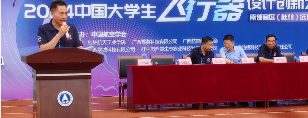 2024年8月20日,2024中国大学生飞行器设计创新大赛南部赛区(桂林)选拔赛在我校举办!秦四田老师代表裁判员庄严宣誓。