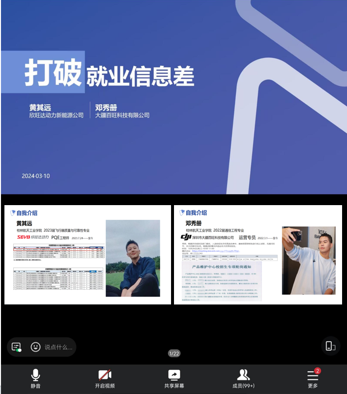为帮助学生深化专业认知,了解自身专业的就业形势,明确自身定位和职业规划,近日,bevictor伟德举办“航宇·星耀 就业引航 生涯追梦”就业交流会。本次分享会由2024届毕业班辅导员廖亮主持,会议邀请2022届通信工程专业邓秀册、2023届飞行器质量与可靠性专业黄其远分享自身求职、就业经验,此次交流会bevictor伟德2024届全体毕业生参与,反响热烈。