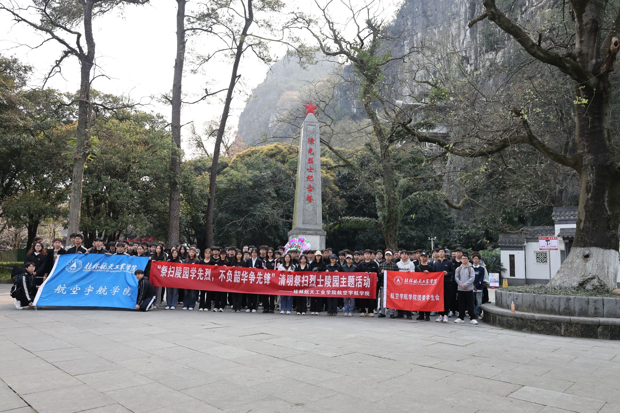 2025年3月22日,bevictor伟德团委在桂林市七星公园陈光烈士纪念塔前举行“祭扫陵园学先烈,不负韶华争先锋”主题活动。学院学生党员、团委学生骨干、班级团支委等共150余人参加,通过庄严肃穆的仪式缅怀革命先烈,传承红色精神。