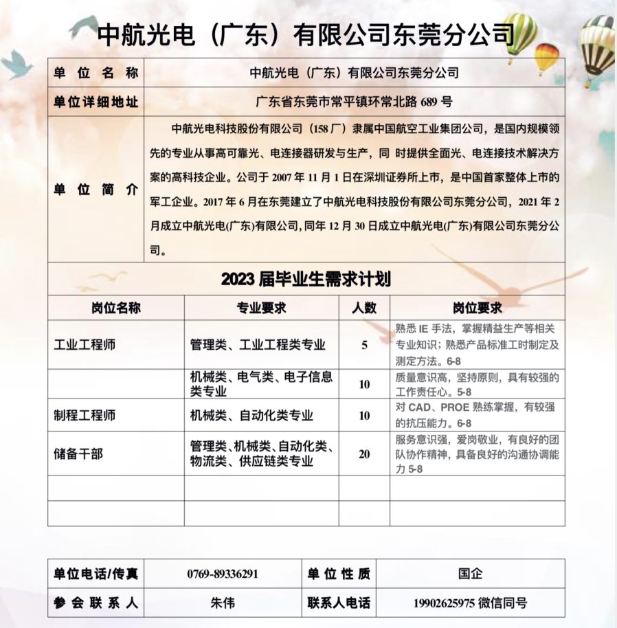【招聘信息】中航光电(广东)有限公司东莞分公司